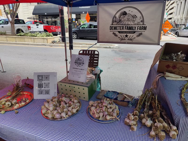 We started in 2022 as a small family farm here in Hilliard, Ohio and have been doing local farmers markets since 2023. We quickly discovered elephant garlic is our favorite and a best seller at markets — its mild flavor and large size make it a crowd favorite. We also grow a soft neck smaller variety called Music.
